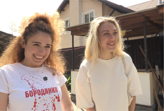 キーウ市ボロディアンカにある動物シェルターでボランティアとして犬の世話を担当。侵攻後閉鎖されたシェルターに、ロシア軍が撤退した翌日に駆け付け、生き残った犬250匹以上を救出。また、カホフカダム爆破による洪水で被災したヘルソン市にもフードや医療品などの物資を届けるなど被災地支援を続ける。